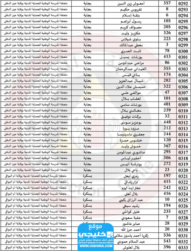 قائمة اسماء الناجحين في الحماية المدنية في الجزائر