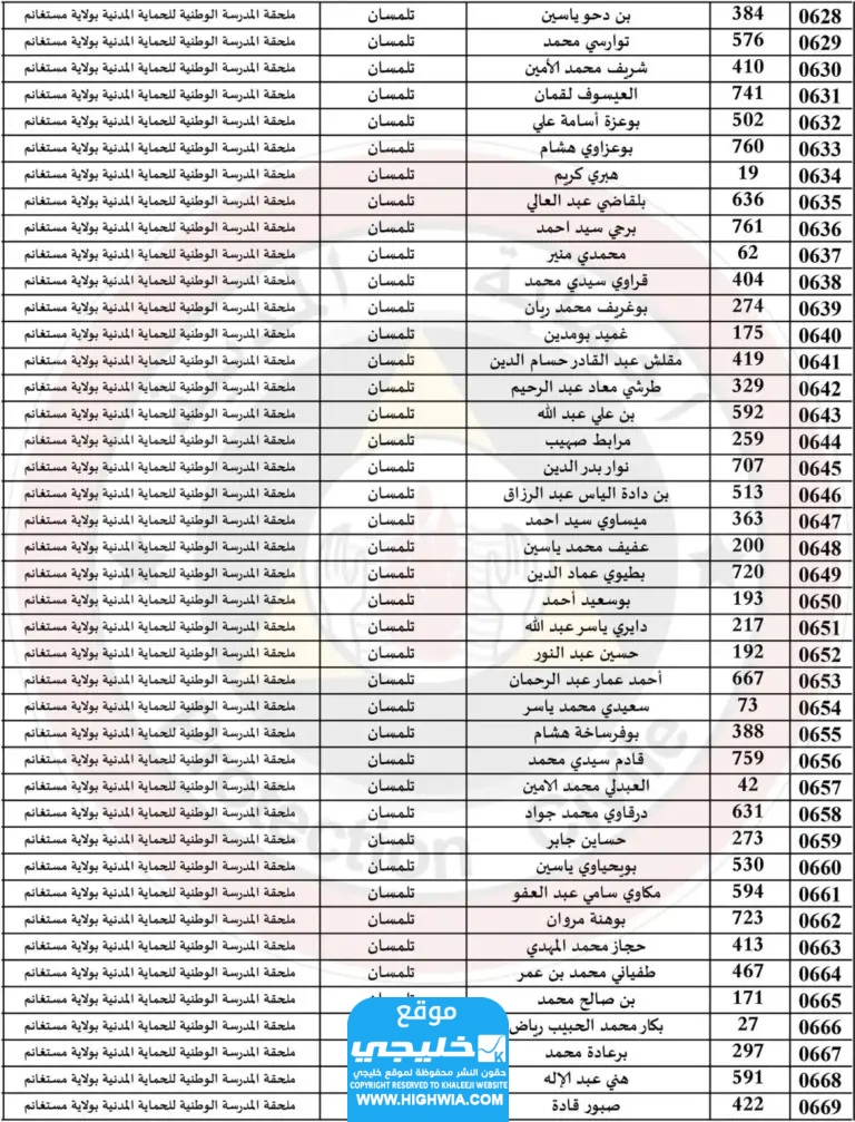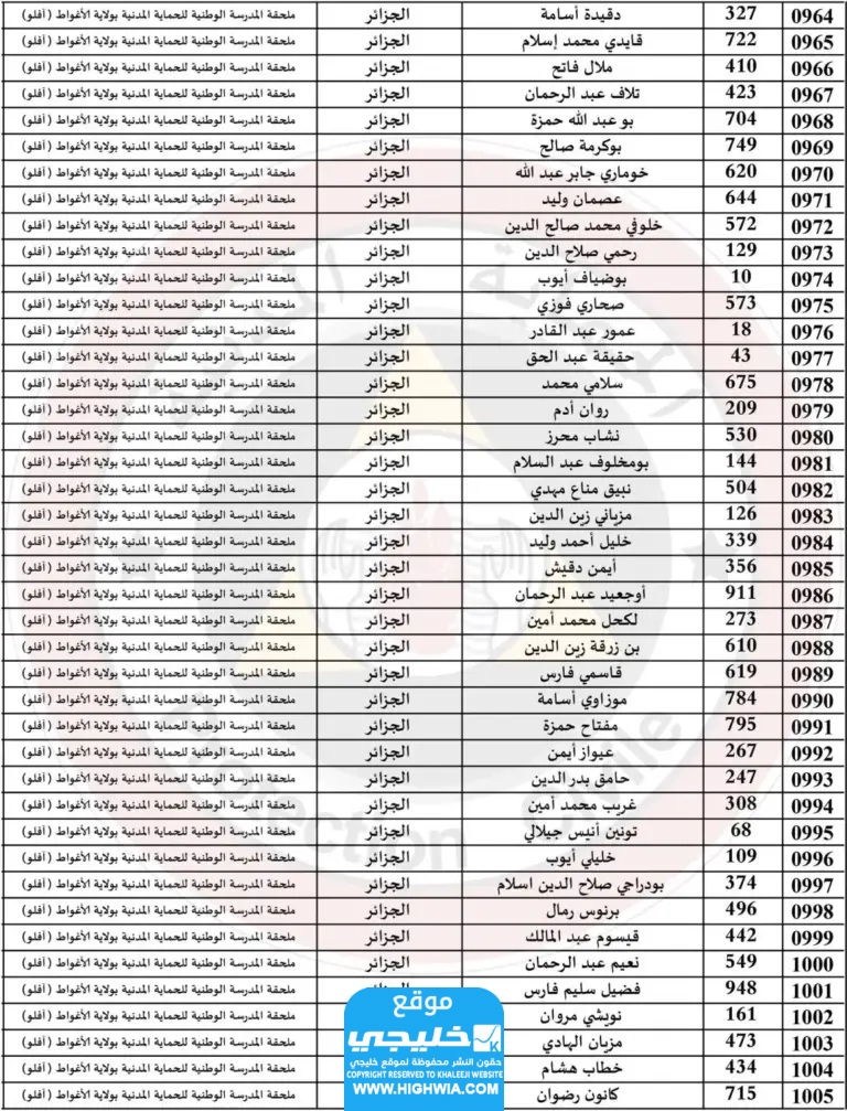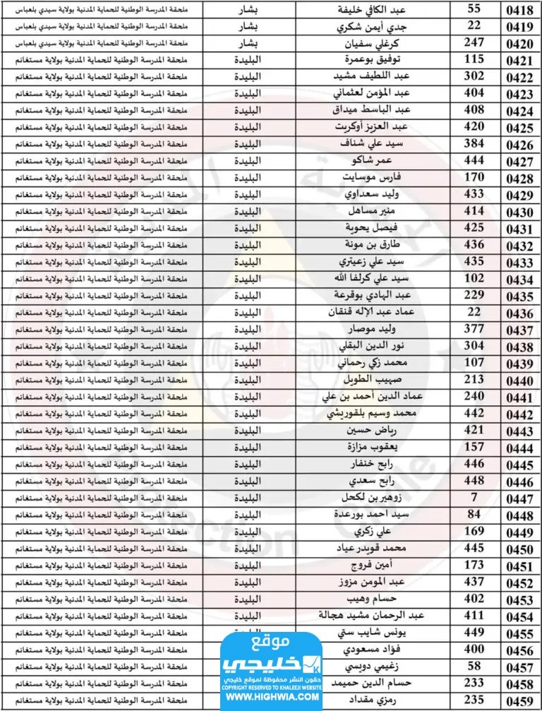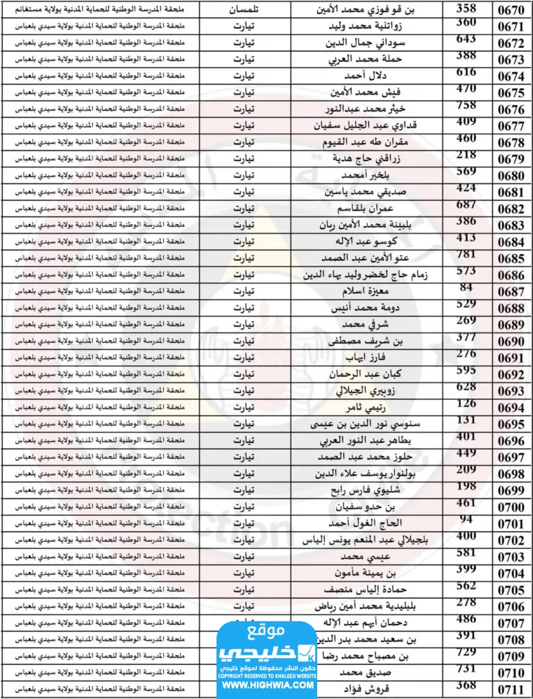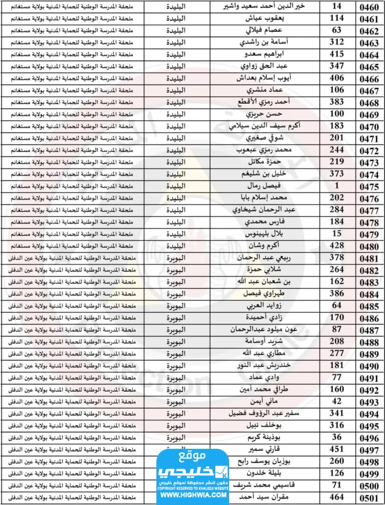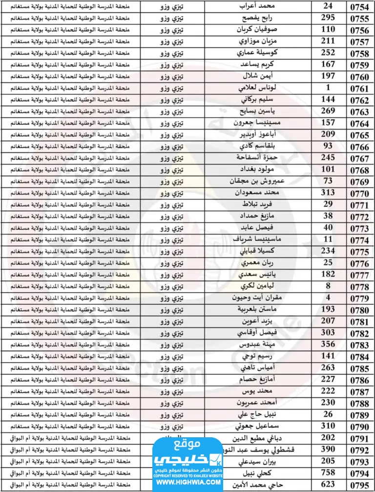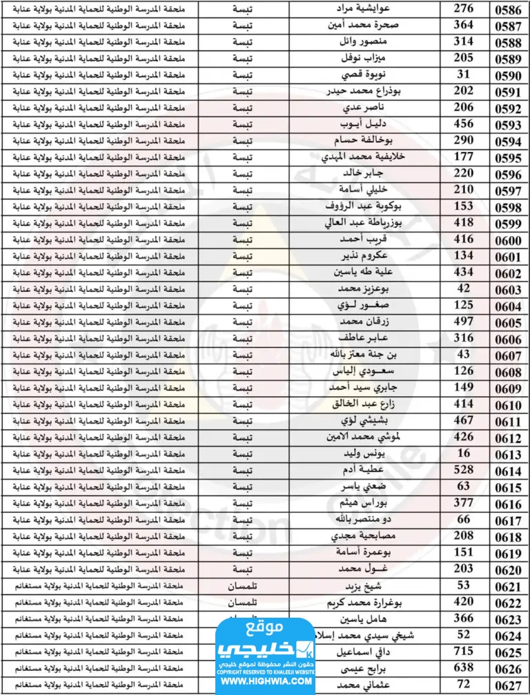 اسماء الناجحين في الحماية المدنية في الجزائر