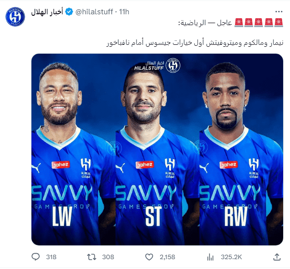 إن الوقت الباقي لمواجهة تشكيلة الهلال نظيرها نفباخور تبعًا للعداد التنازلي كما يلي: