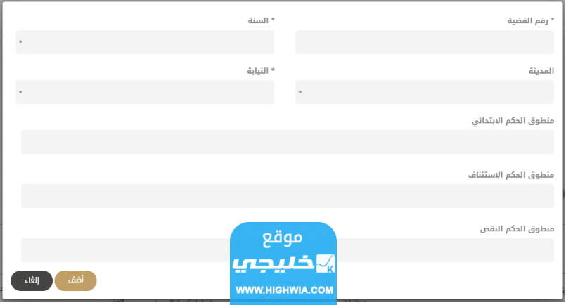 - إذا كان طلب الاسترحام يتعلق بقضايا يتم إدخال كامل بيانات القضية ثم اضغط على “أضف”.
