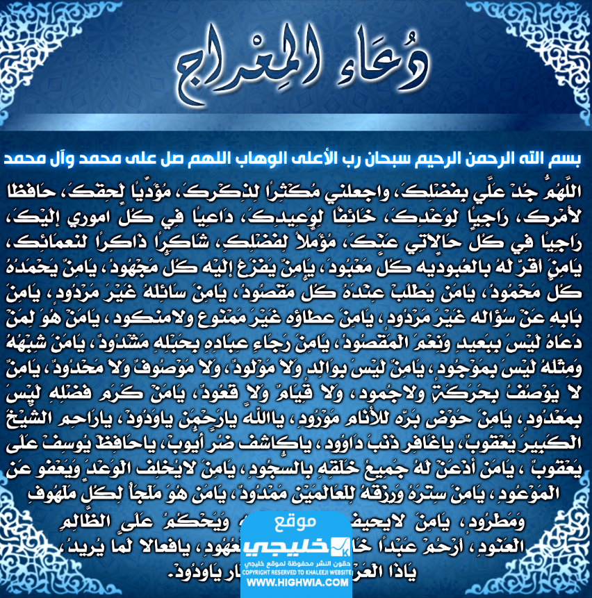 - صورة دعاء الإسراء والمعراج للحبيب.