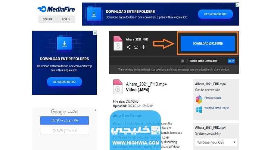 يمكن تحميل فيلم الحارة الأردني بدقة عالية عبر الرابط التالي www.mediafire.com. فقط اضغط على download بحجم 393.98 ميجا بايت، وسيتم البدء بتحميل الفيلم على جهازك.