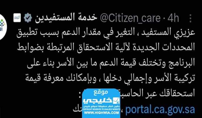 - قد ينقص حساب المواطن في حال استقل أحد التابعين عن الأسرة.